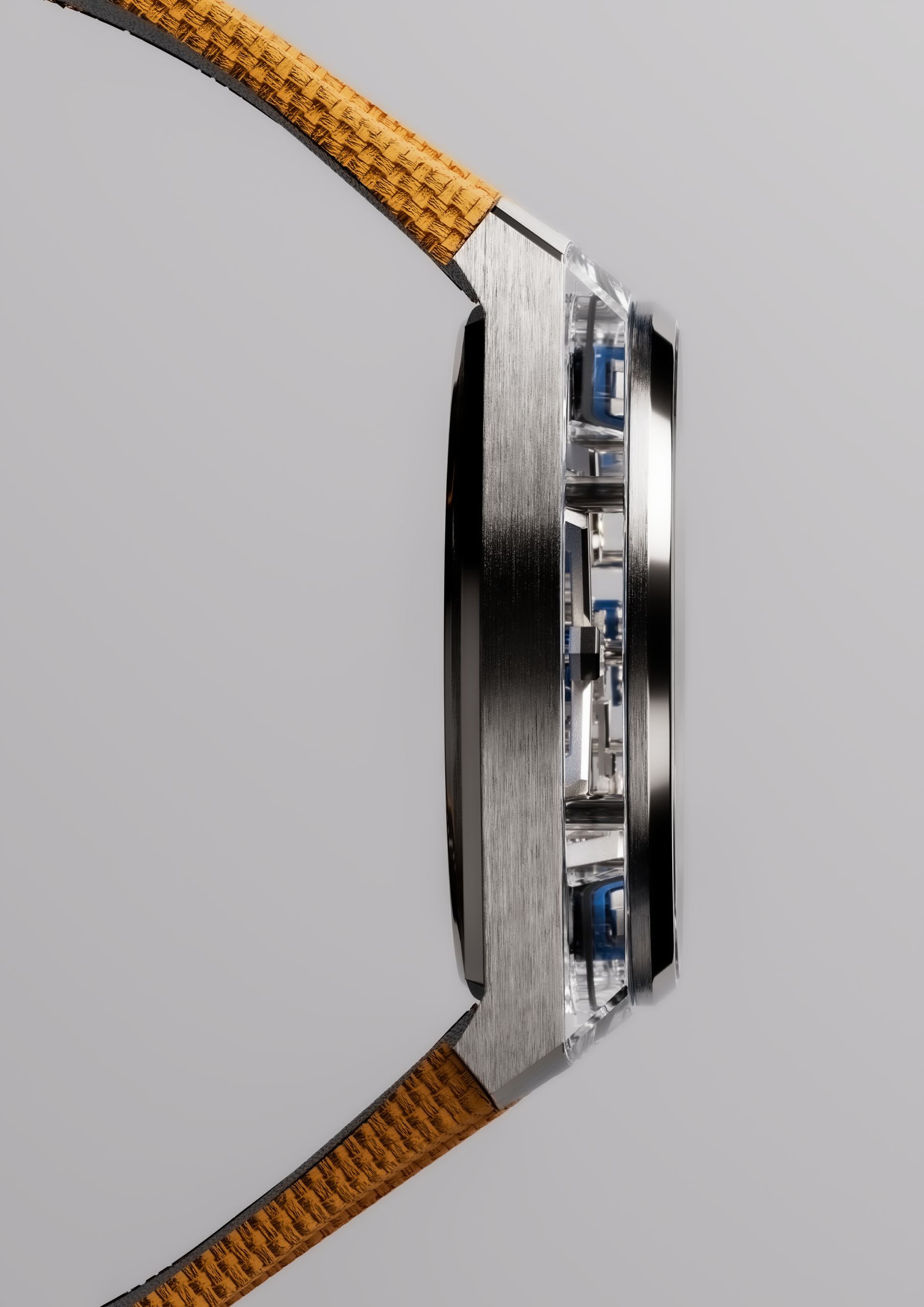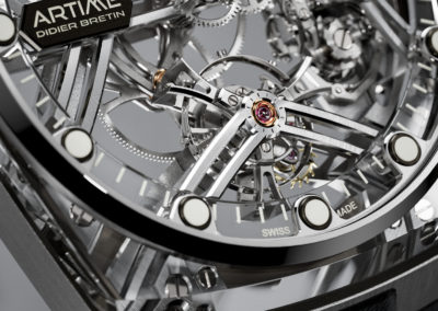 La boite et le mouvement ne font qu’un, la transparence permet la vision des terminaisons exceptionnelles de la manufacture Artime !